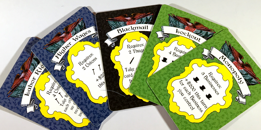 Game mechanics focus on a simple-to-learn, hard-to-master auction dynamic. Votes, cronies, and cashflows all go to the highest bidder, but luck has a role too.